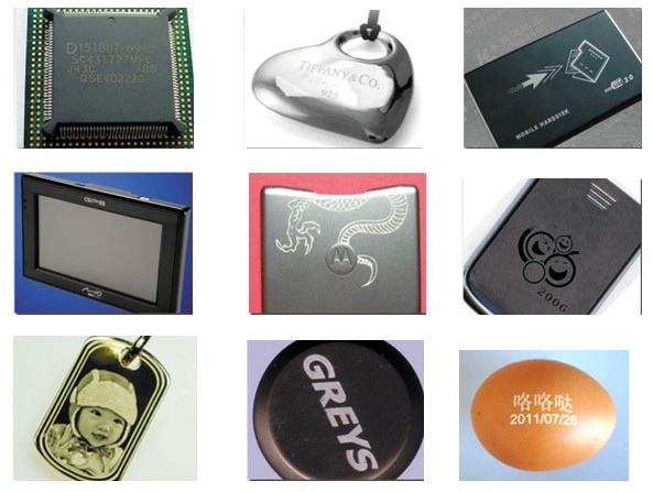 適用標(biāo)記多種金屬材料和部分非金屬材料。更適合應(yīng)用于一些要求更精細(xì)、精度更高的場合。應(yīng)用于電子元器件、塑膠按鍵、集成電路(IC)、電工電器、手機(jī)通訊等行業(yè),適用材料包括普通金屬及合金,金屬氧化物,特殊表面處理(磷化、鋁陽極化、電鍍表面),ABS料(電器用品外殼、日用品),油墨(透光按鍵、印刷制品),環(huán)氧樹脂(電子元件的封裝、絕緣層)。